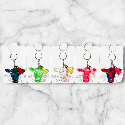 Custom Moo Moo Mood Keychain Handmade Resin Cow Keychain with Vibrant Colors Glossy Finish Custom Colors & Glitter Options Available Cute Adorable Cow Patterns